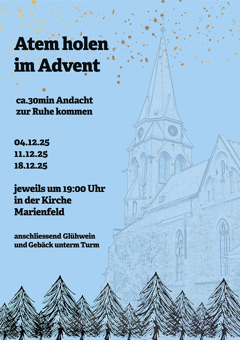 Lass dich 30 Minuten ein auf vorweihnachtliche Gedanken. Im Anschluss Umtrunk unterm Turm.